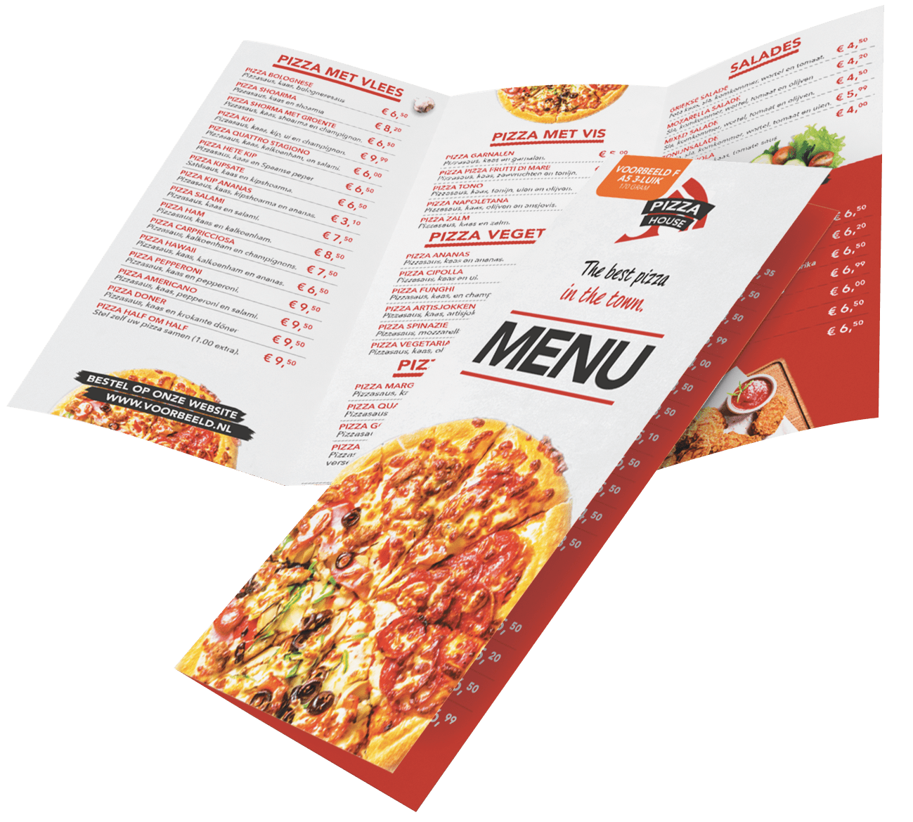 Wilt u de menukaarten door ons laten ontwerpen? Wij verzorgen uw ontwerp voor een vaste prijs van € 99,-
